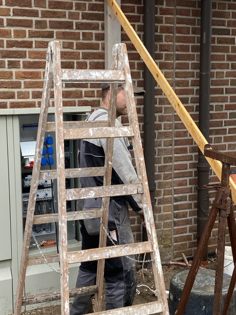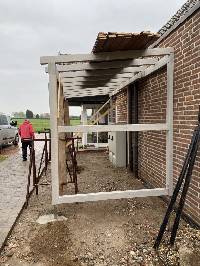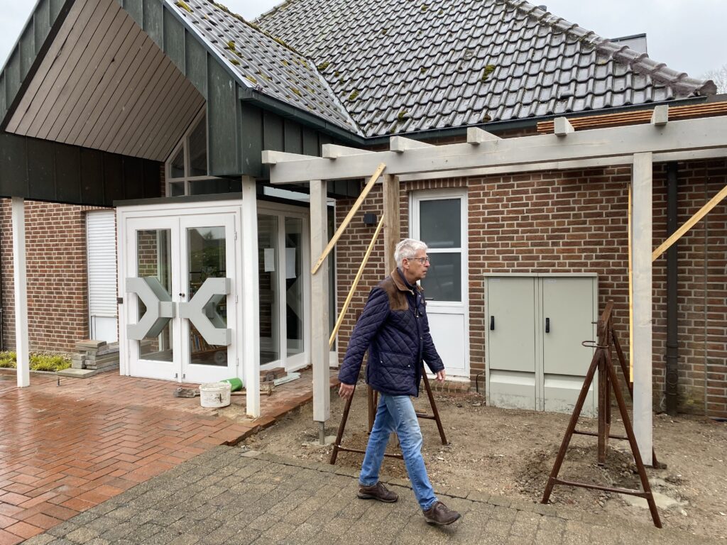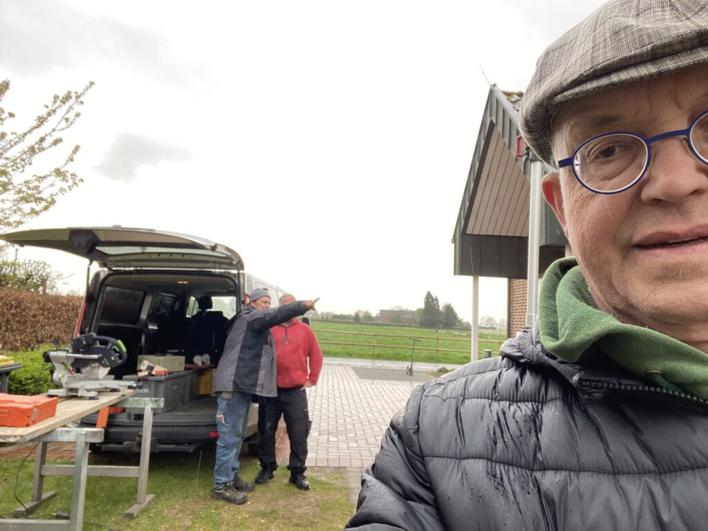 Wo sollen manche Sachen nur hin? Wo soll das Leergut hin, die Mülltonnen, und was ggf. noch so untergestellt werden könnte. Schreinermeister Peter Keusen hat hier professionelle Vorarbeit geleistet und mit Hilfe von ehrenamtlicher Unterstützung fachmännisch angeleitet. Auch wenns geregnet hat und nicht so schönes Wetter war – es hat prima geklappt!