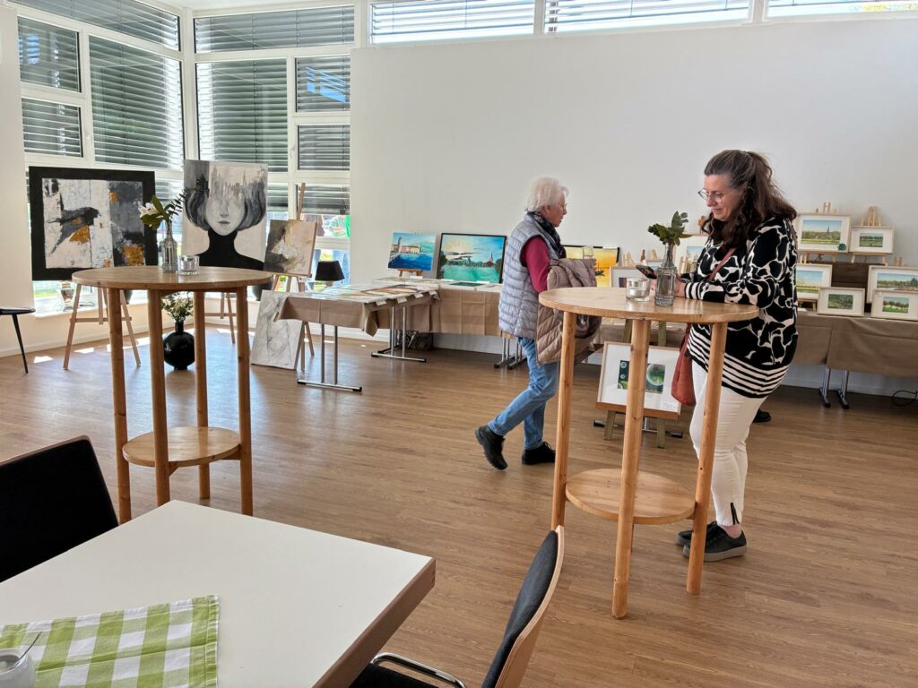Und alle kamen auf ihre Kosten! Die Kinder wurden bedacht. Es gab im Haus eine Lese- und Mitmachende, während draußen die Hüpfburg wartete. Es gab für Große wie Kleine zu essen und zu trinken. Die Sonne schien und mit jeder Minute stieg die gute Laune. Besondere Freude machte die Musik und die Bilder. So wurden Ohren und Augen auch noch belohnt.